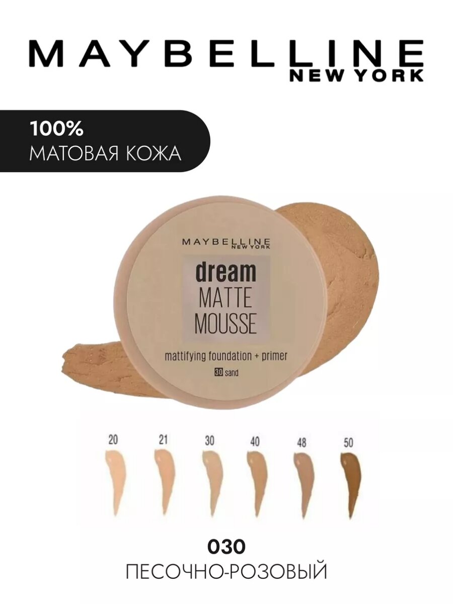 Maybelline New York Тональный мусс Dream Matte Mousse, 18 мл, оттенок: 30 Sand