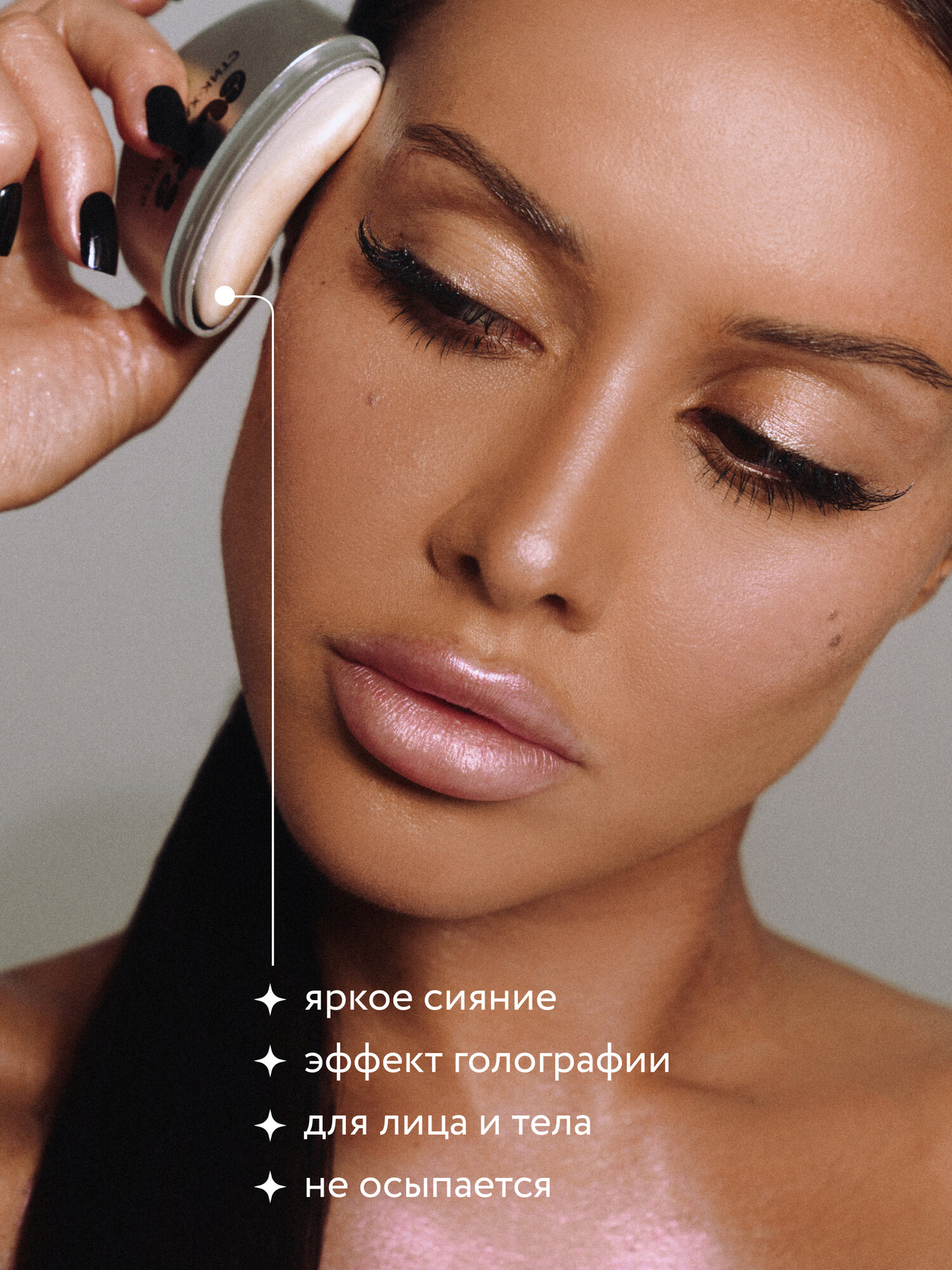 | Способ применения | Нанеси хайлайтер, прижав его к коже. Растушуй с помощью пальцев или кисти. |