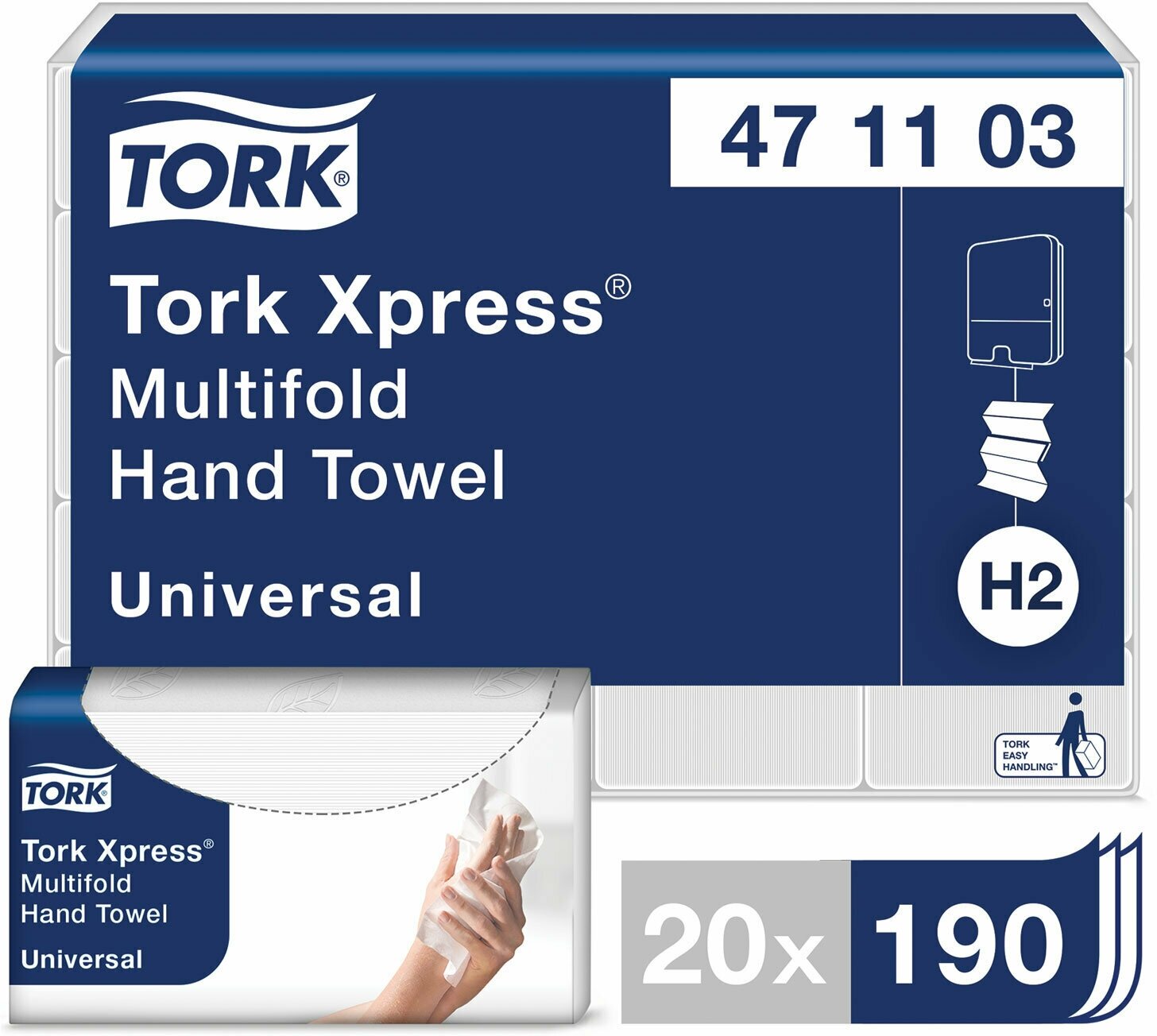 Полотенца бумажные (1 пачка 190 листов) TORK (H2) Universal, 2-слойные, цвет натуральный,23,4х21,3, Z-сложение, 471103 В комплекте: 1шт.