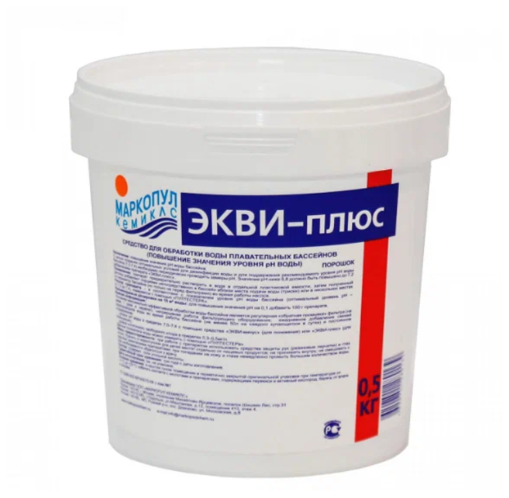Химия для бассейна маркопул кемиклс Экви-плюс, повышение PH воды0,5 кг (12) ХИМ08, белый