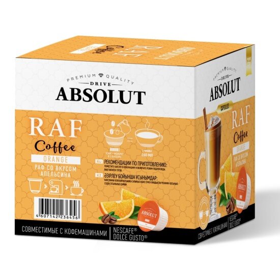 Кофе в капсулах Absolut Drive "РАФ Апельсин" 12 капсул (для кофемашин Dolce Gusto) информация: