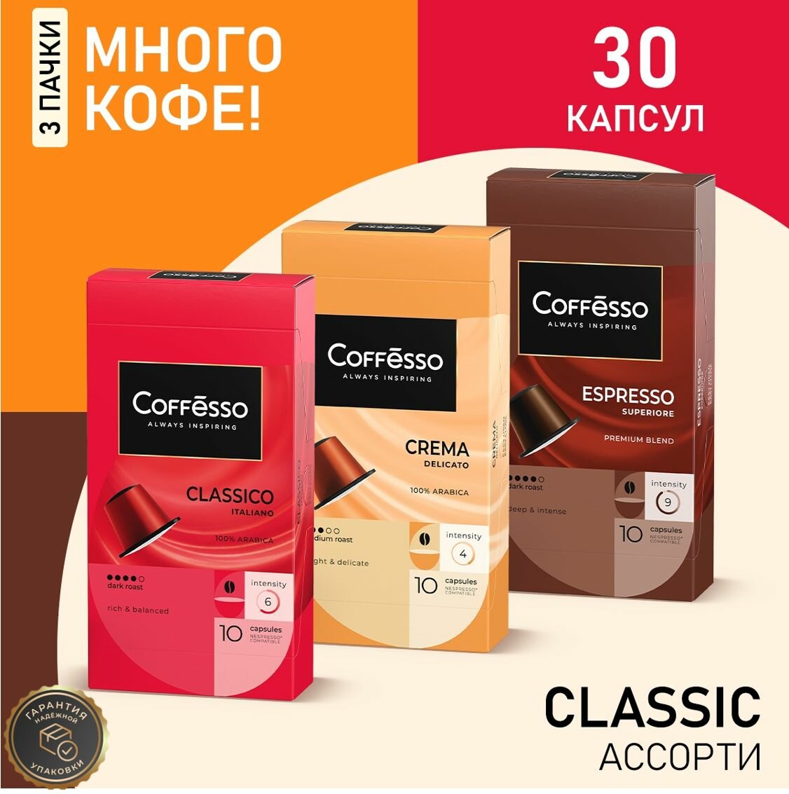10 цен на Кофе в капсулах Nespresso Coffesso Classico, Crema, Superiore ассорти набор 3 упаковки x10шт