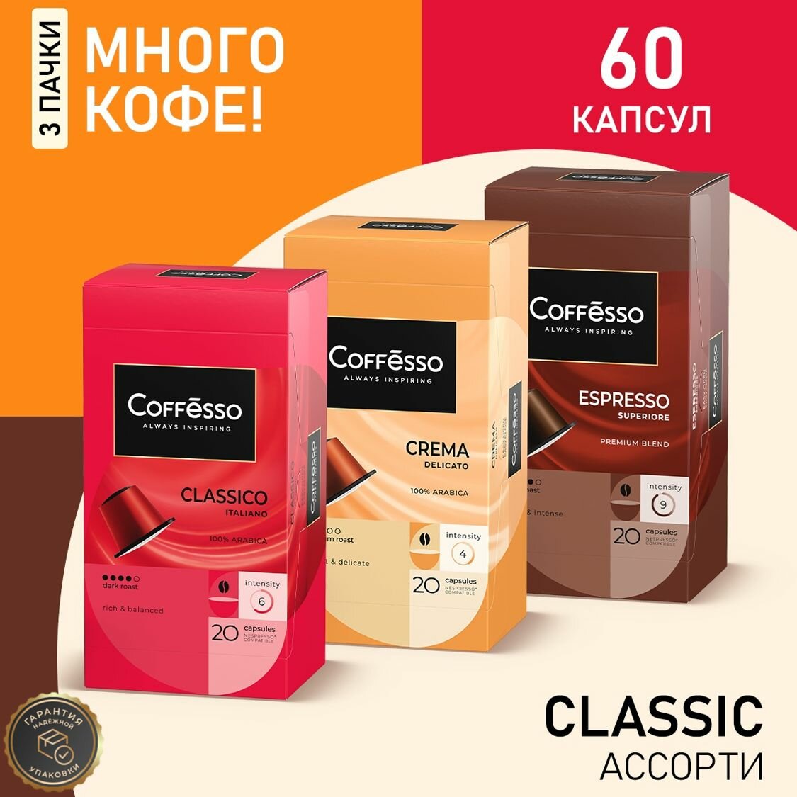 Кофе в капсулах Nespresso Coffesso Classico, Crema, Superiore ассорти набор 3уп х 20шт информация: