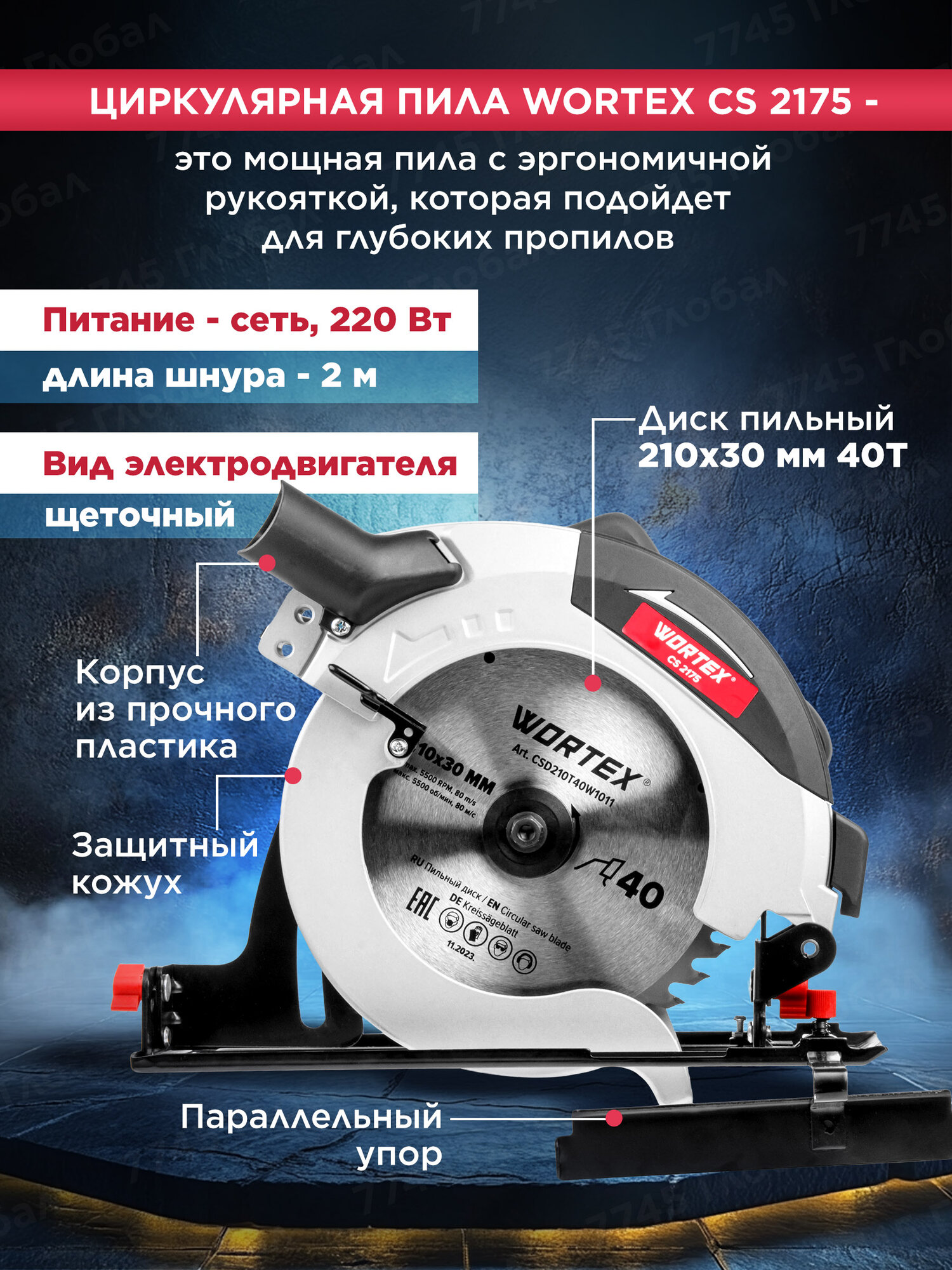 Пила циркулярная по дереву WORTEX CS 2175 1900 Вт (1318506) информация:
