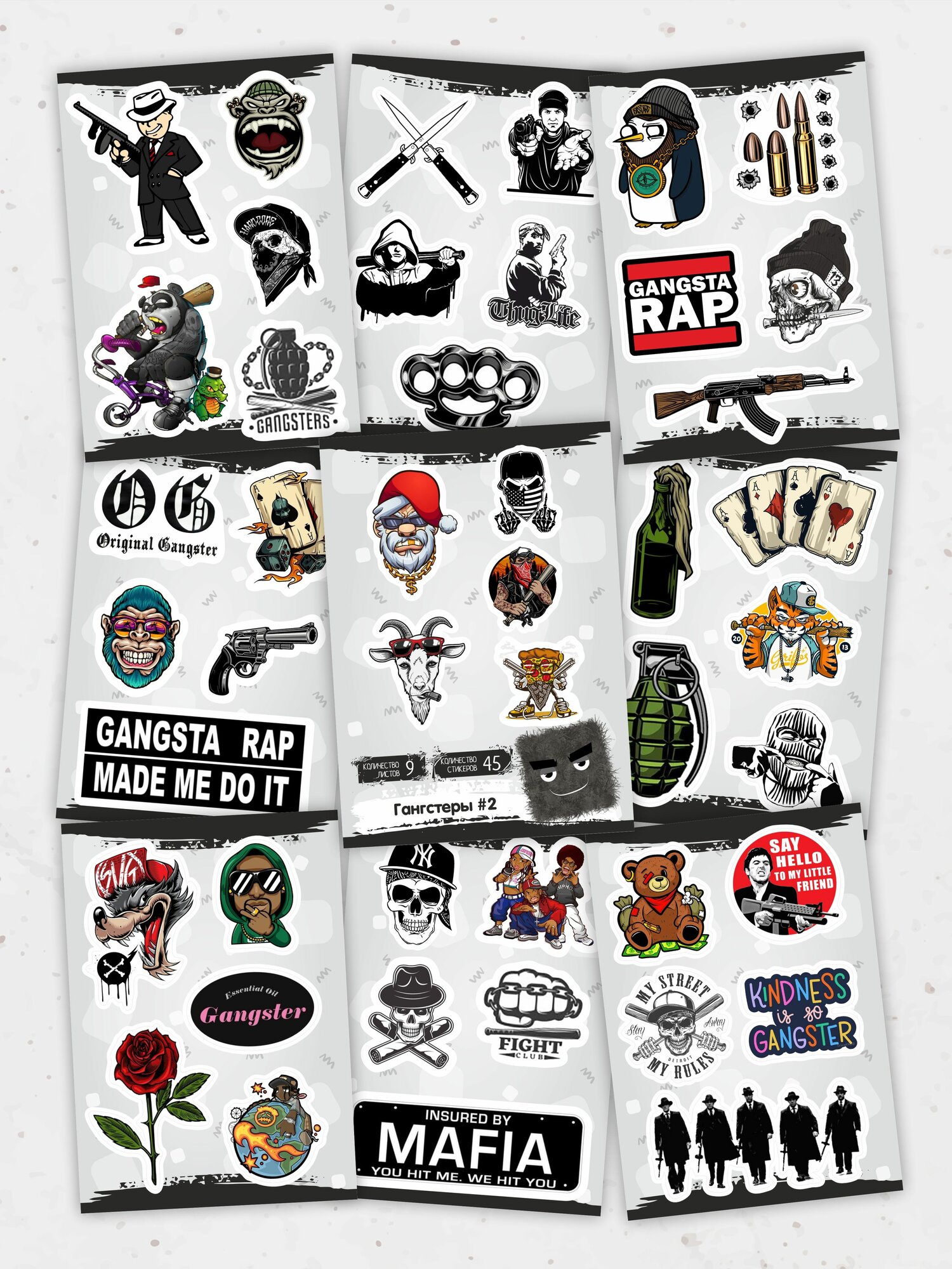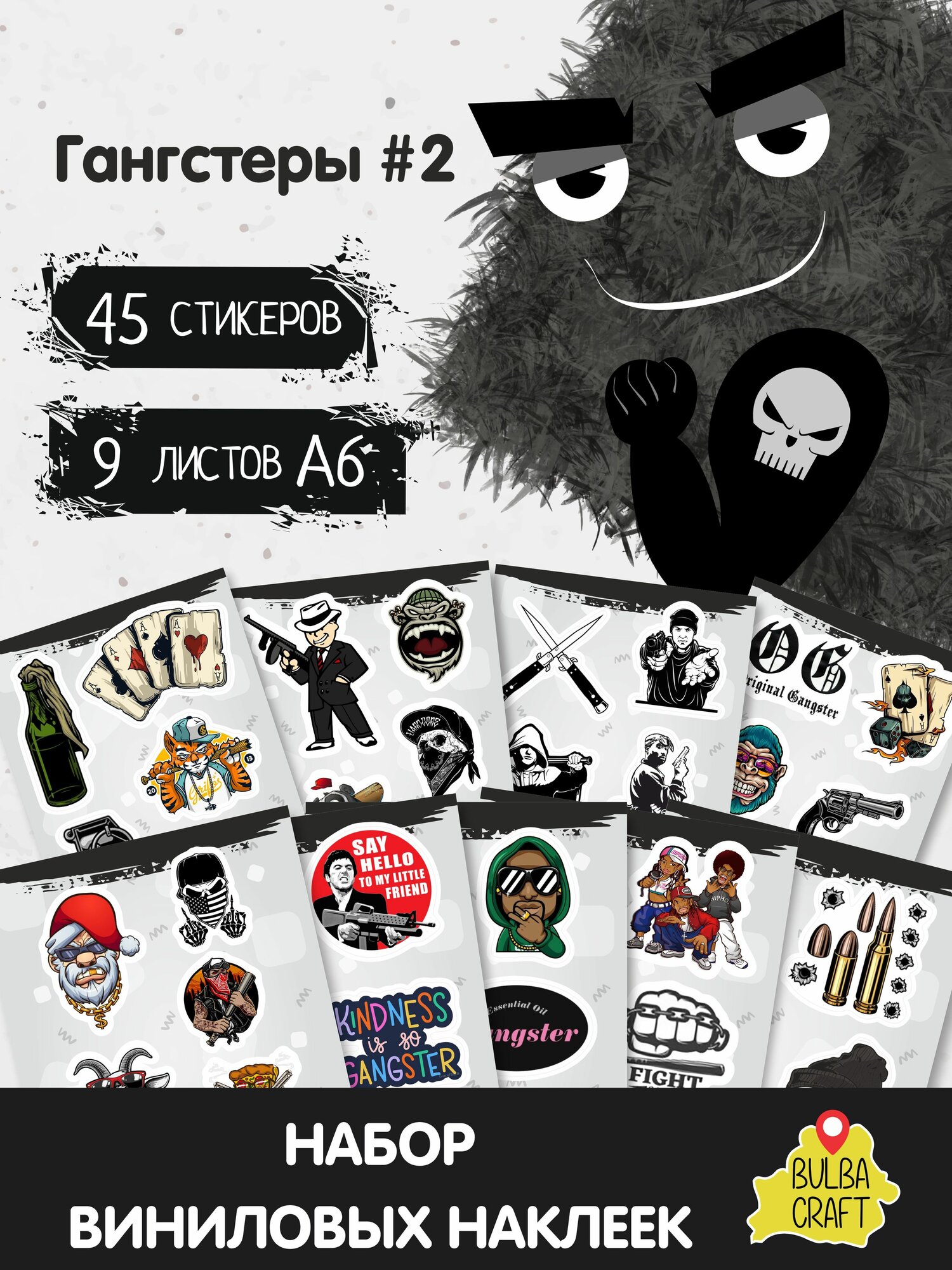 10 цен на Наклейки стикеры милые "Гангстеры #2", 45 шт, 9 листов А6. Для детей. Набор наклеек для декора, на телефон, чехол, ноутбук. BulbaCraft