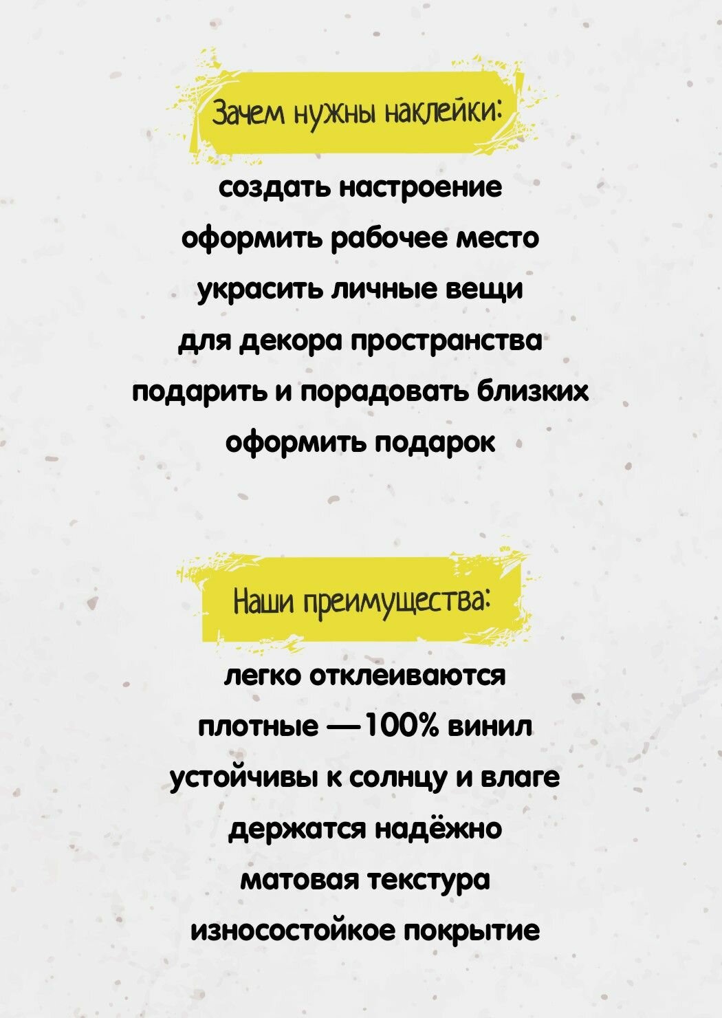 | Дополнительная информация | Водонепроницаемые стикеры упакованы в целлофановый пакет с клеевым клапаном |