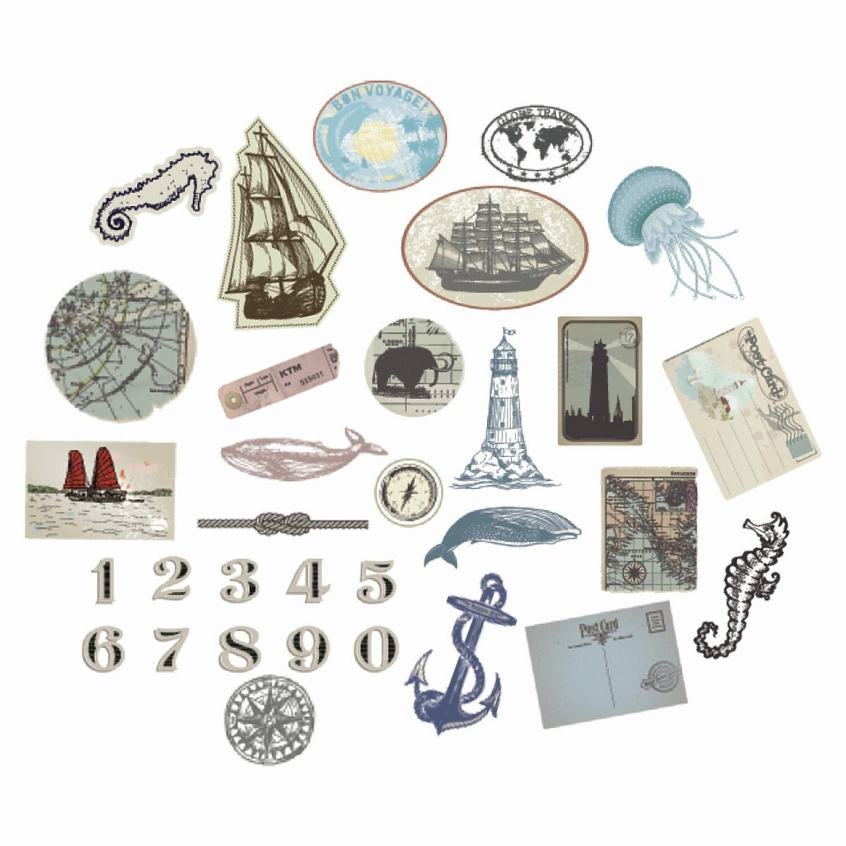 Наклейки для скрапбукинга Остров Сокровищ Путешествие из washi-бумаги, 64шт, 32 дизайна (662265), 10 уп. информация: