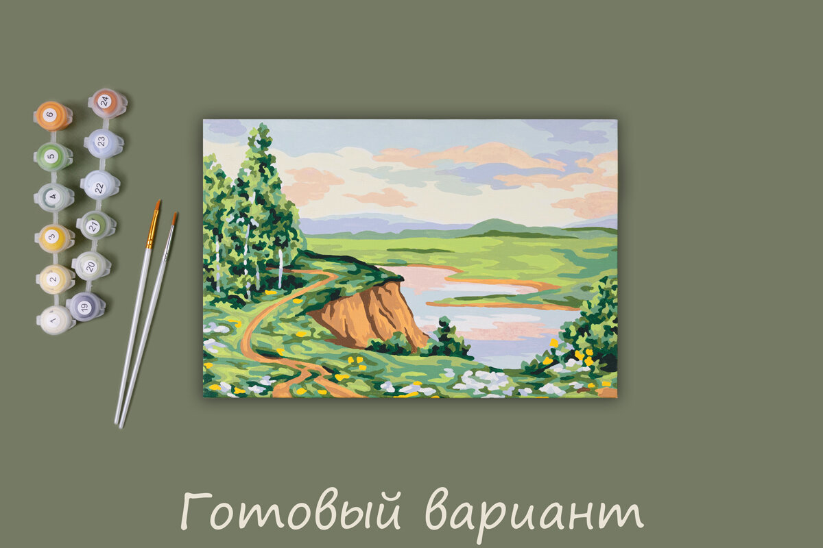 | Комплектация | холст на подрамнике, акриловые краски в пронумерованных баночках, три кисти разного размера, инструкция с контрольным листом и эталоном готовой картины |