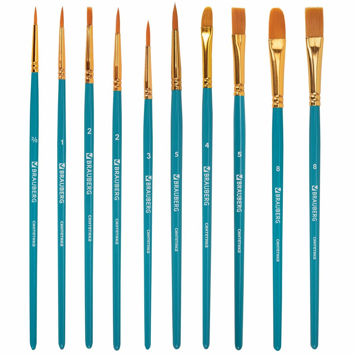 Набор кистей, синтетика, Brauberg 10шт, синие (Круглые; Овальные; Плоские; Лайнеры) (201030), 12шт. информация: