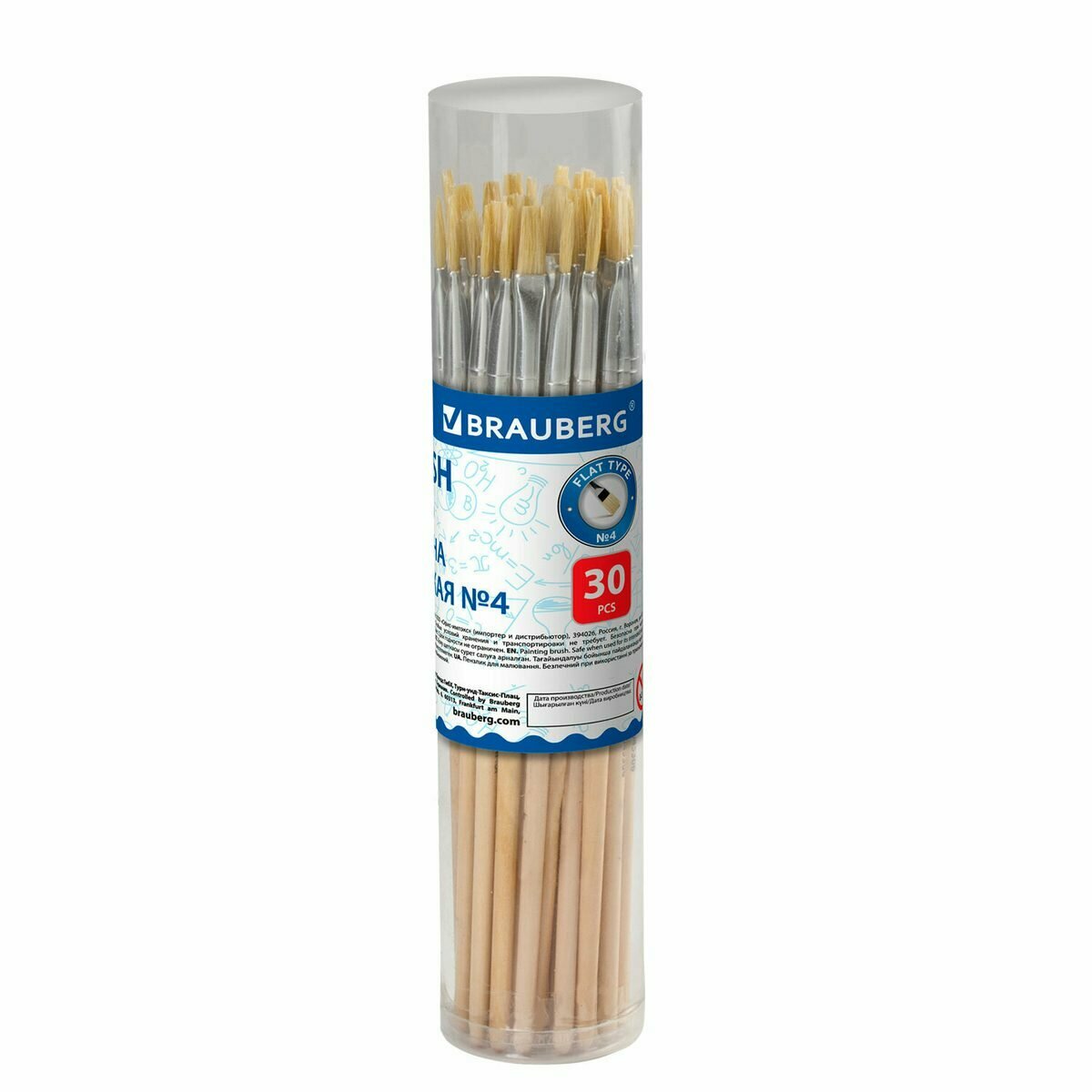 Кисть Brauberg, щетина, плоская, №4 (200882), 30шт. информация: