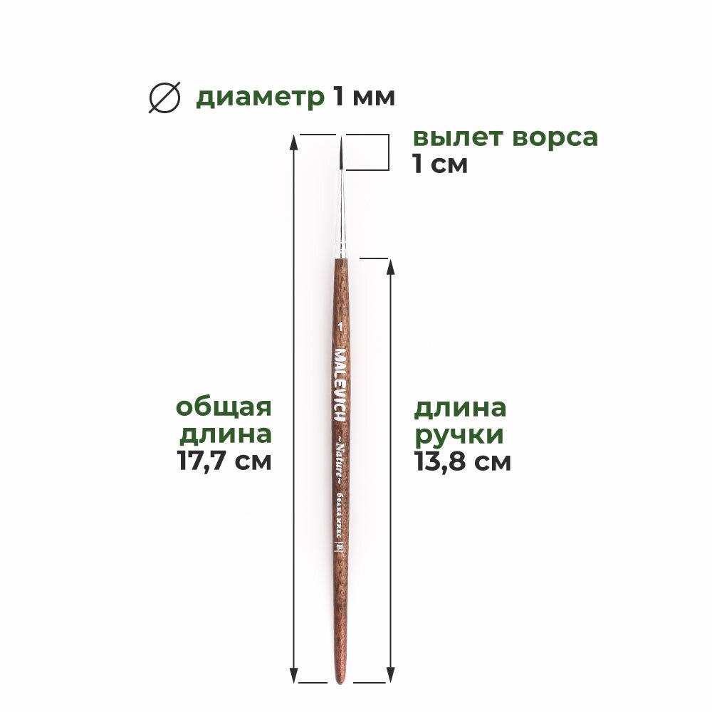 Кисть для акварели Малевичъ из белки и мягкой синтетики, круглая №1 178 ₽