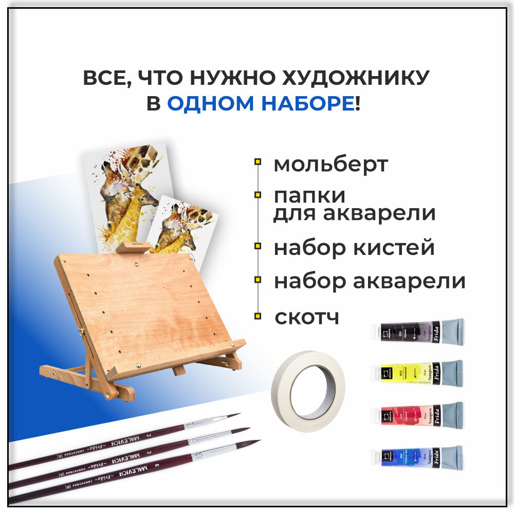 Стартовый набор для рисования акварелью с мольбертом Малевичъ информация: