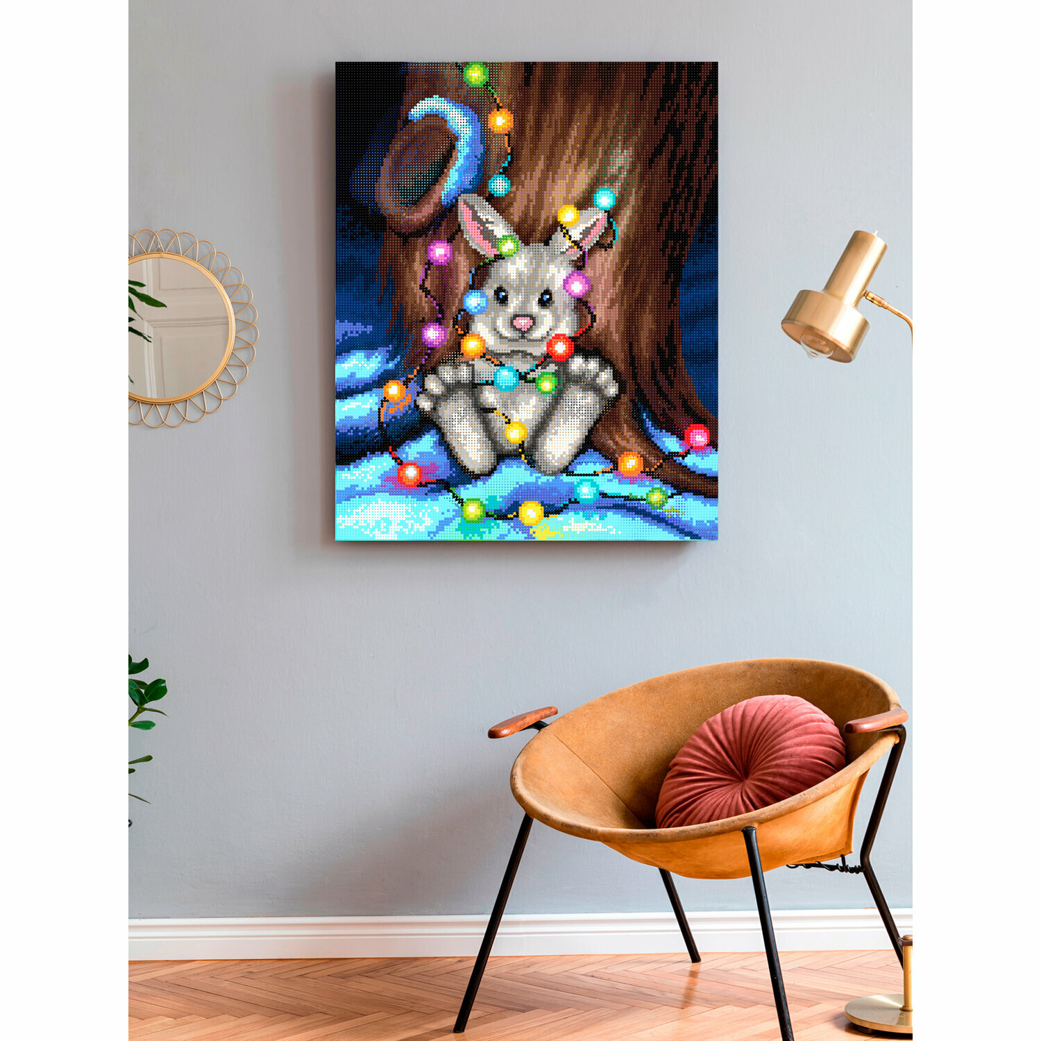 10 цен на Алмазная мозаика на подрамнике 40х50 см Зайчик с гирляндами. Алмазная вышивка. Картина стразами