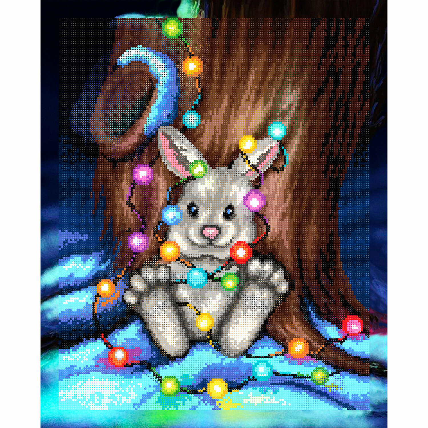 Алмазная мозаика на подрамнике 40х50 см Зайчик с гирляндами. Алмазная вышивка. Картина стразами информация: