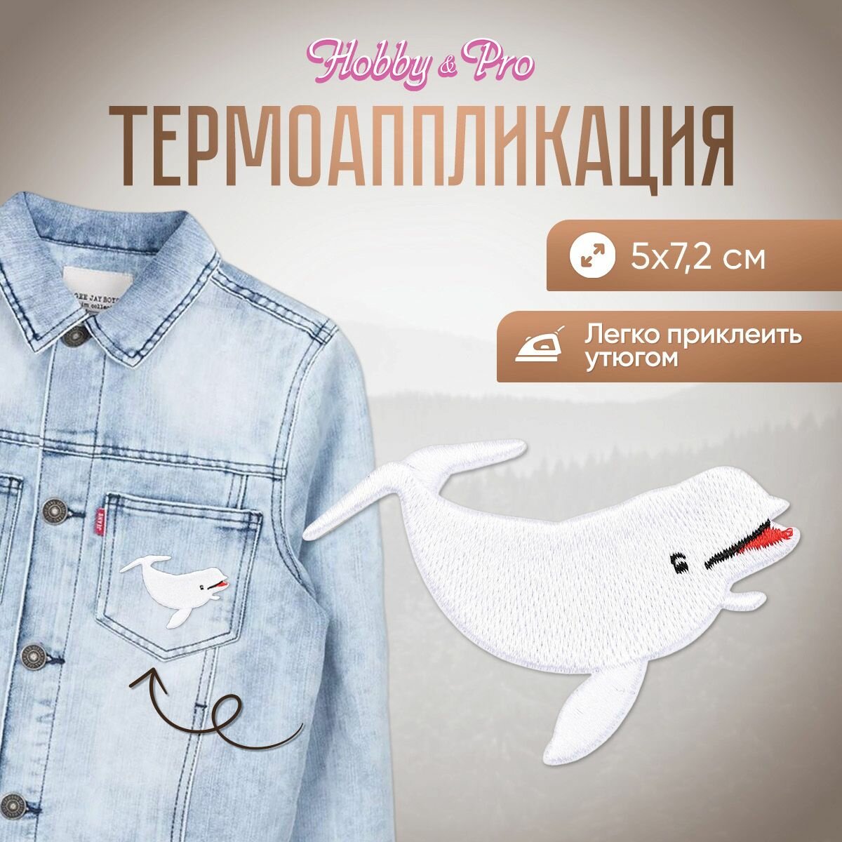 Термоаппликация на одежду Hobby&Pro 'Белый дельфин', 5*7.2 см, полиэстер информация: