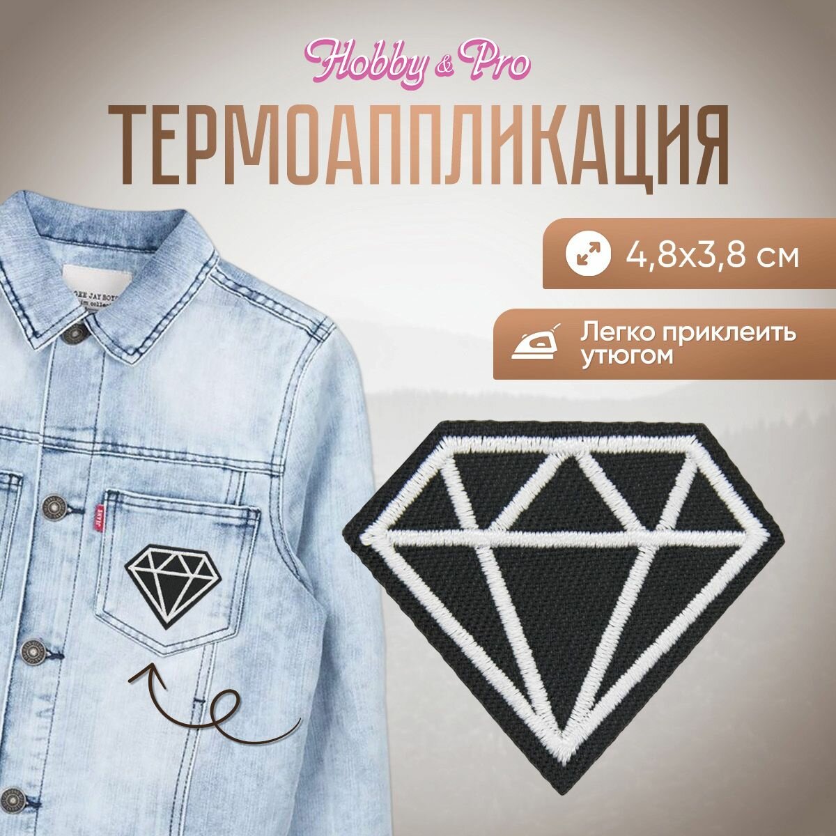 Термоаппликация на одежду Hobby&Pro 'Бриллиант', 4,8*3,8 см (черный, белый) информация: