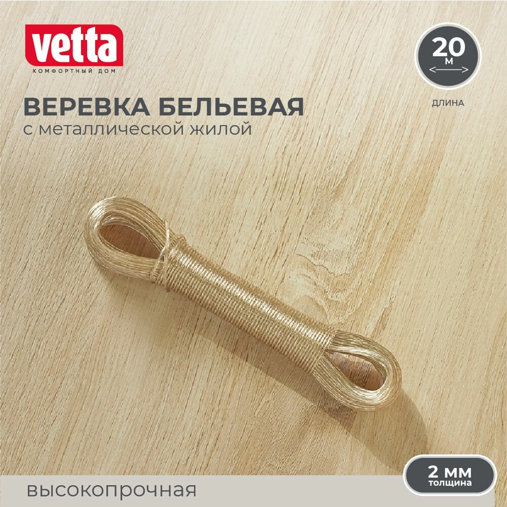 10 цен на Шнур с металлической жилой 20 м х 2 мм VETTA, веревка бельевая