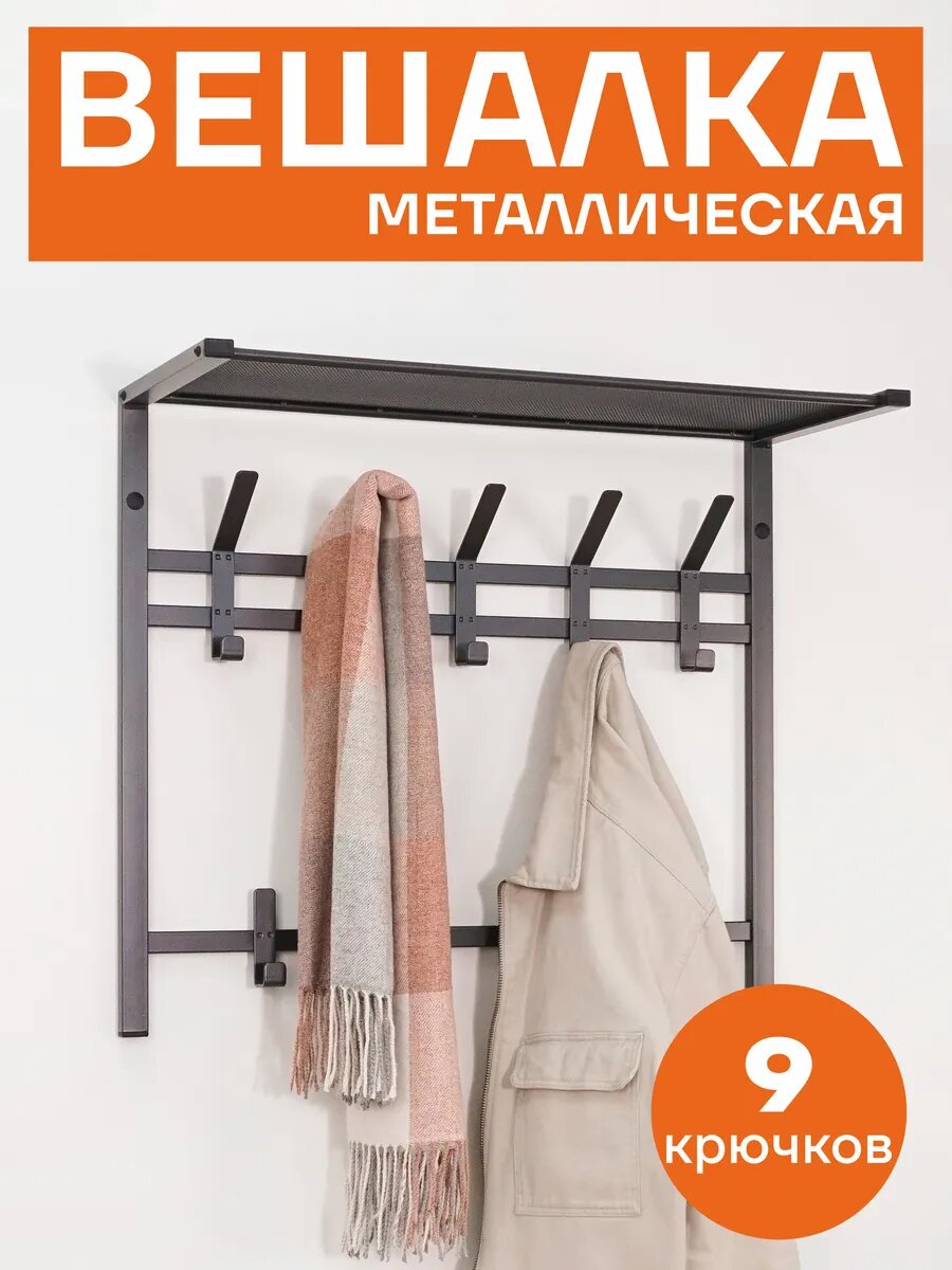 Вешалка настенная ЗМИ с полкой, металлическая, 60х22х26,5, черная 890 ₽