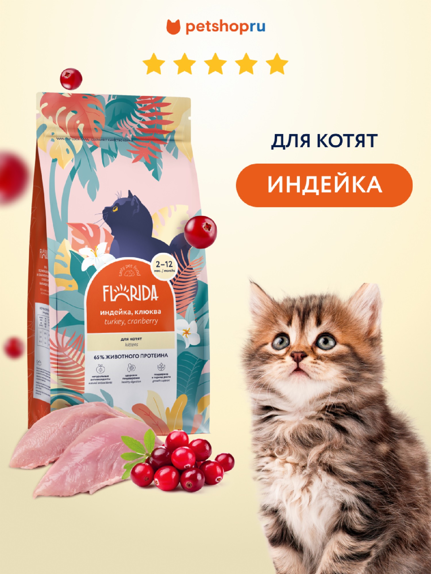 FLORIDA для котят с индейкой и клюквой (0,8 + 0,8 кг) 1 977 ₽