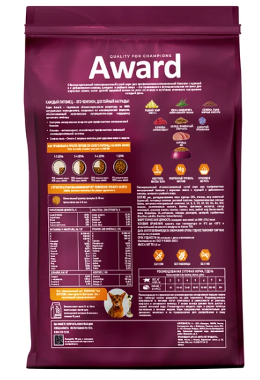 Корм для кошек сухой AWARD для крупных пород с говядиной и курицей 1,5 кг 2 841 ₽