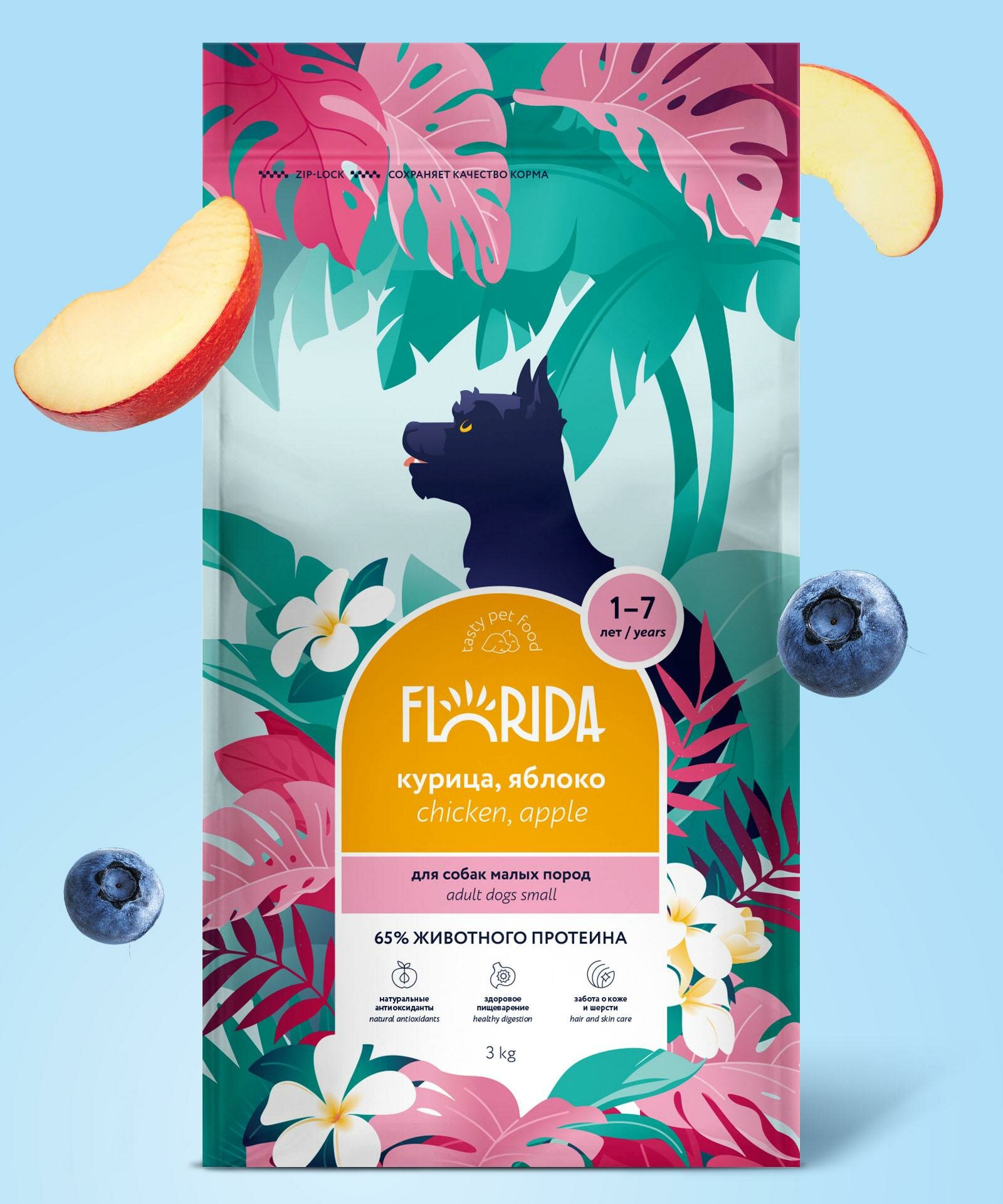 FLORIDA для взрослых собак маленьких пород с курицей и яблоком NEW 1 кг х 4 шт 3 286 ₽