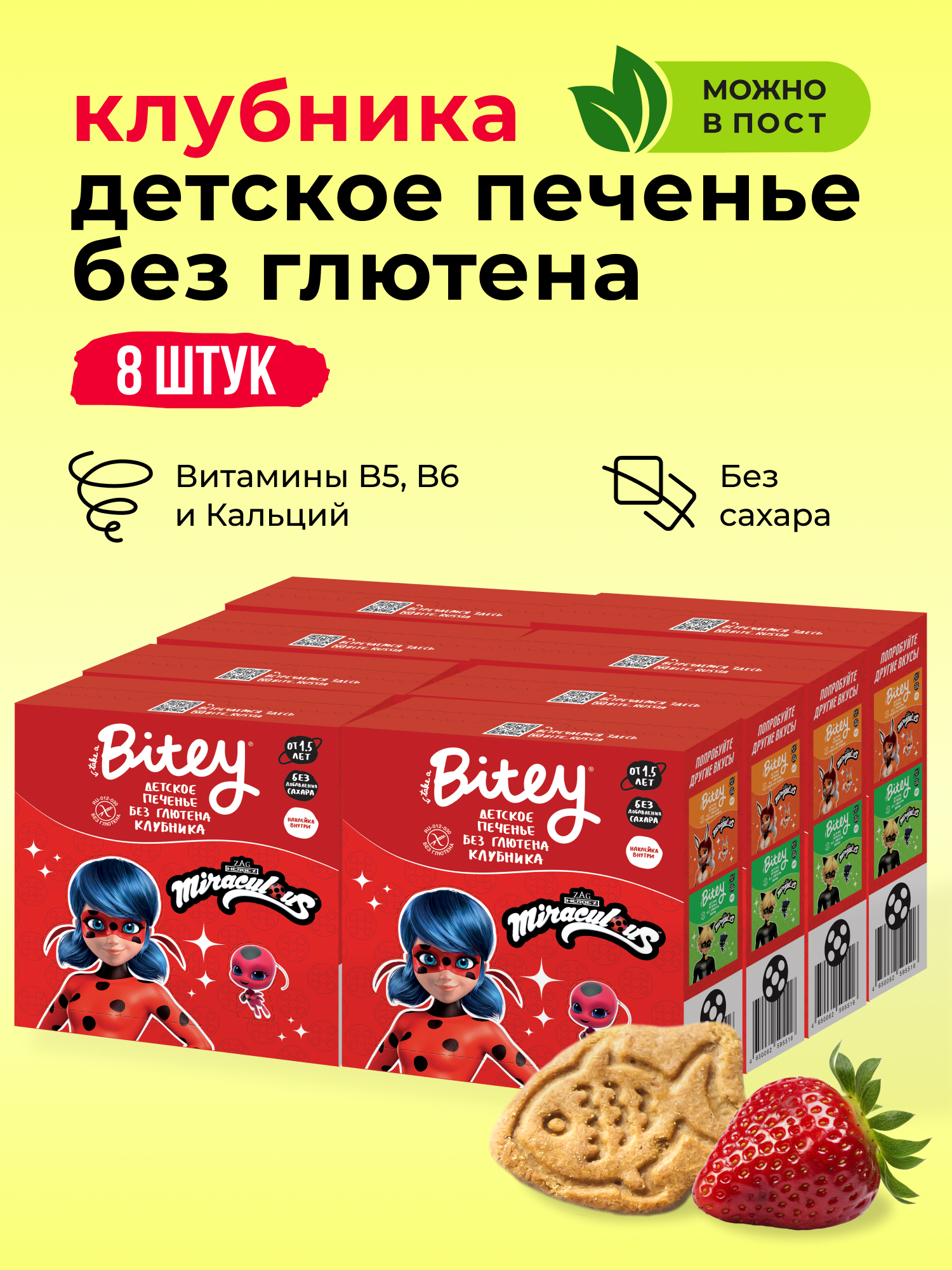 Печенье детское без сахара Take a Bitey / Bite, Клубника, без глютена, 8 шт по 125 гр 1 379 ₽