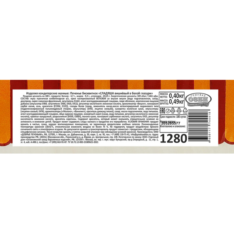 Печенье бисквитное Семейка озби Сладяша вишневый в белой глазури TV, 400г информация: