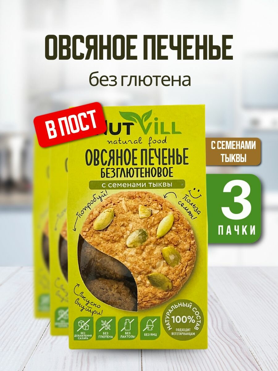 10 цен на NutVill Печенье овсяное С семенами тыквы без сахара без глютена, 3 шт.