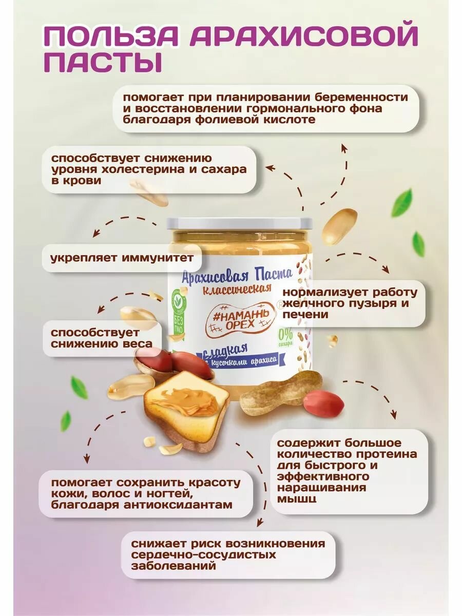 Арахисовая паста без сахара без добавок с кусочками арахиса 450 грамм Намажь орех 494 ₽