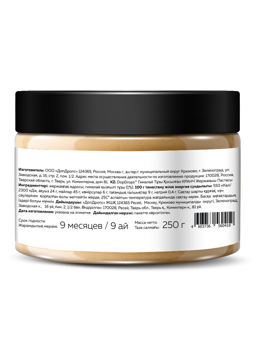 Арахисовая паста DopDrops с гималайской солью классическая 250 г информация:
