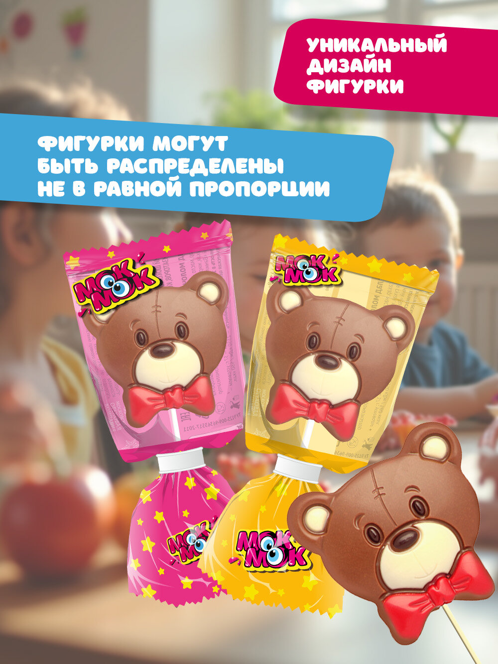 10 цен на Шоколад фигурный Мок Мок Мишка детский молочный на палочке с печеньем, 24 шт по 24 г