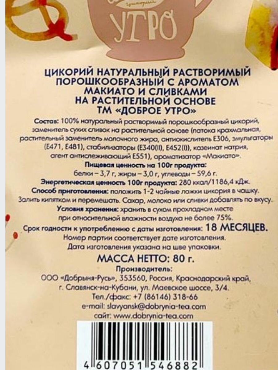 Доброе утро Цикорий натуральный с ароматом Макиато 3 упаковки по 80г информация: