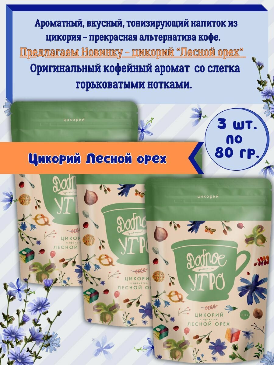 Доброе утро Цикорий натуральный вкус - Лесной орех 3 упаковки по 80г информация: