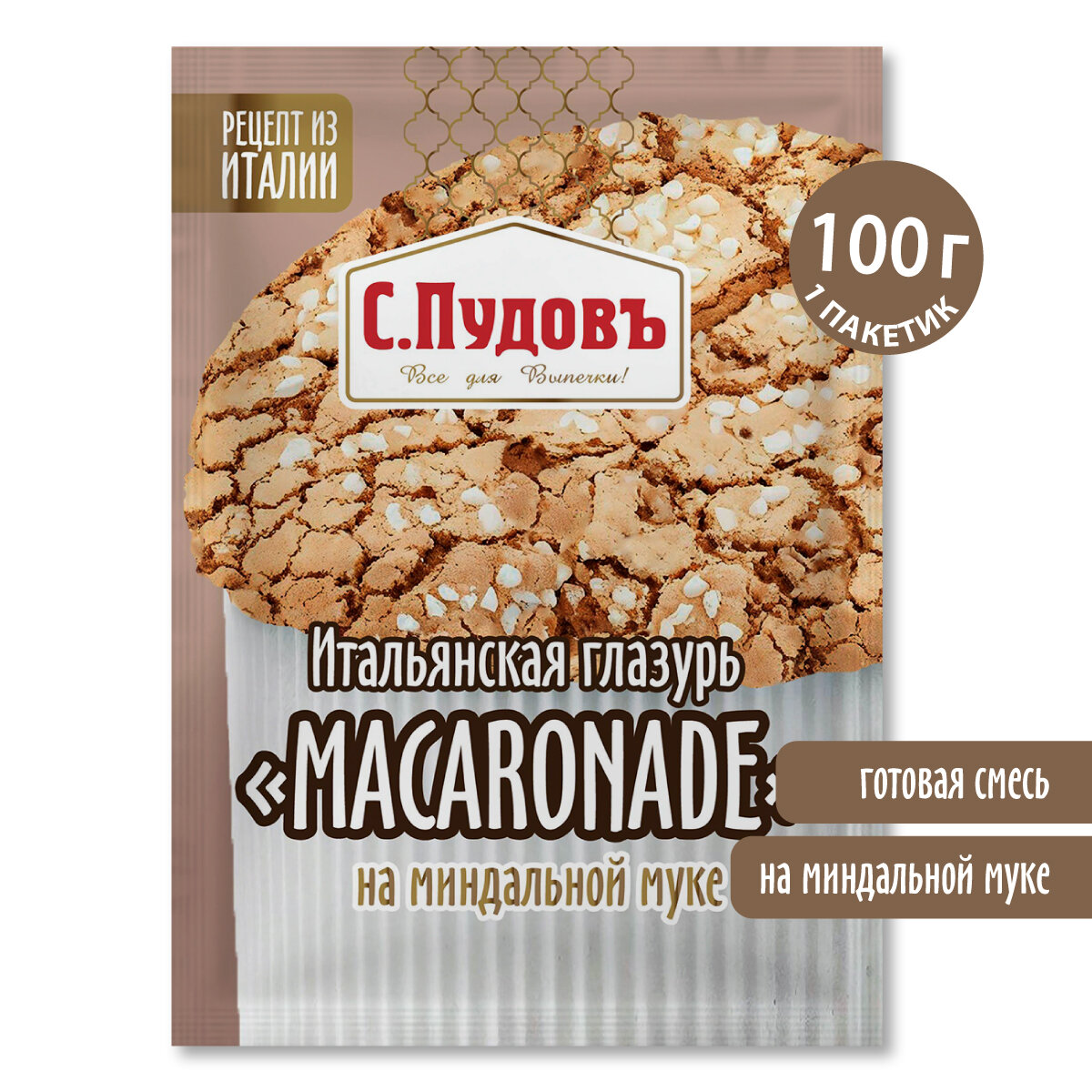 Глазурь кондитерская итальянская на миндальной муке, С. Пудовъ, 100 г информация: