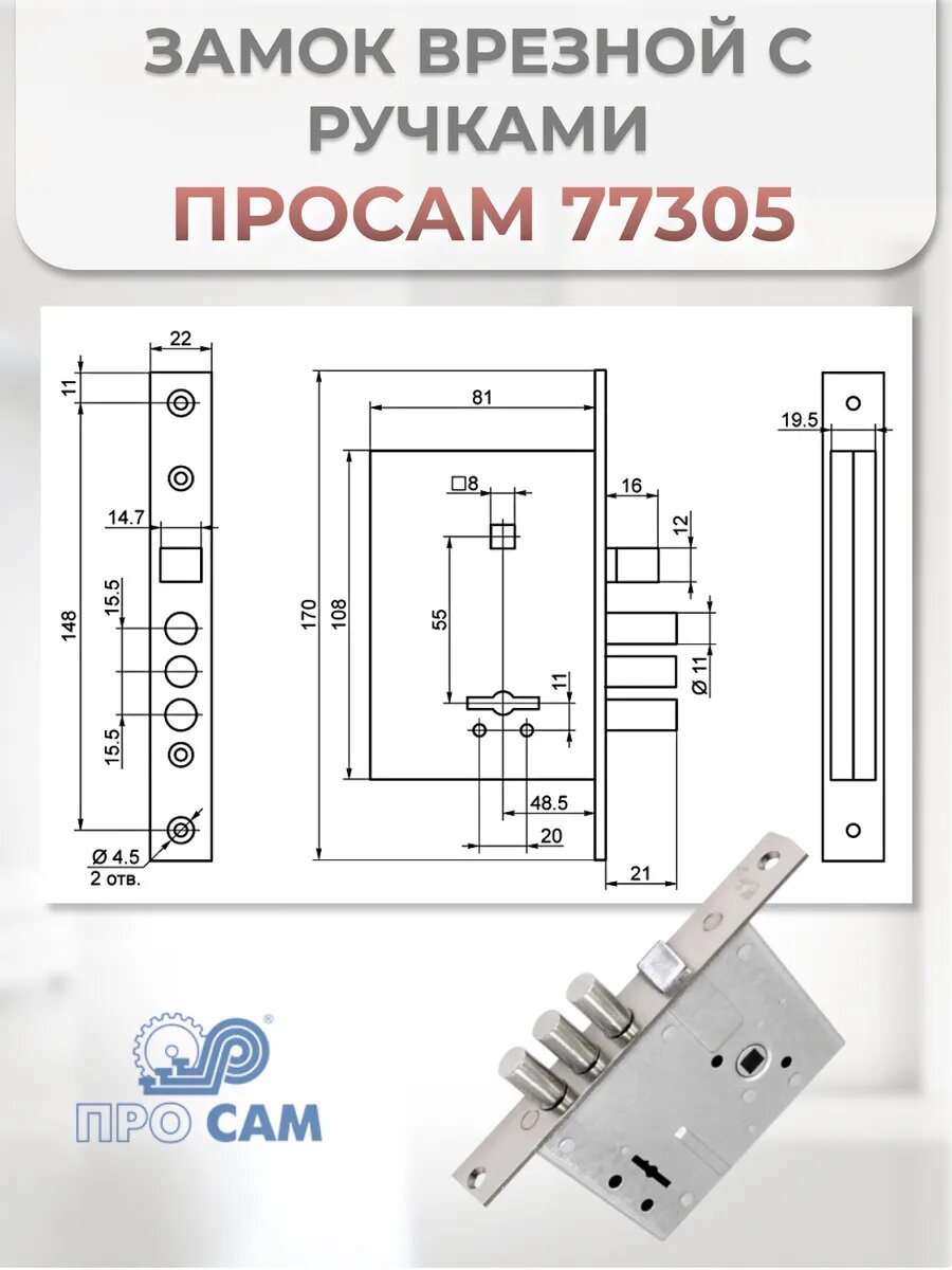 Замок врезной сувальдный Сам ЗВ 9-6/13 с ручками (77311) медный антик 1 450 ₽
