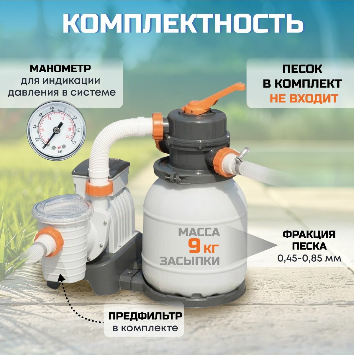 Песочный фильтр-насос 3028л/ч, резервуар для песка 8.5кг, фракция 0.45-0.85мм
