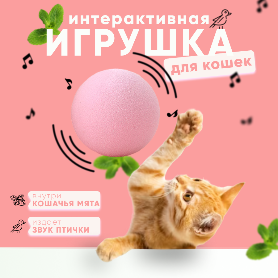 Игрушка для кошек Drakon IRG "Звуковой шарик", с кошачьей мятой, розовая, 5,5 см информация: