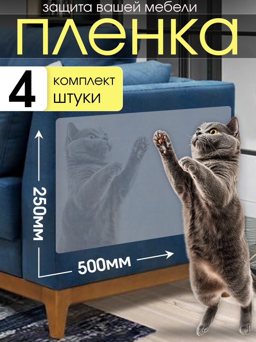 Защитная пленка от кошек Джесси, самоклеящаяся и влагостойкая наклейка защита мебели и обоев от царапин, 50x25 см, 4 шт информация: