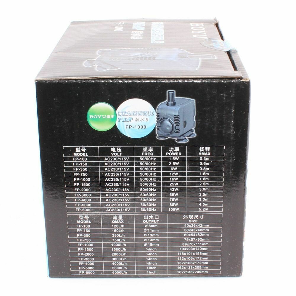 Помпа BOYU FP-1000 c регулятором потока (1000 л/ч. h1.8 м. 15 мм) информация:
