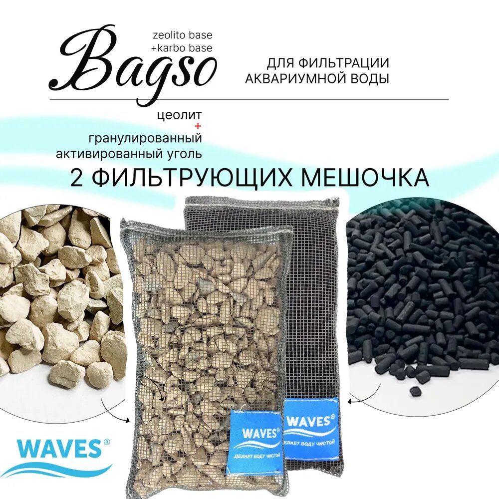 WAVES "Bagso karbo base" 2 сетчатых мешочка с активированным углем - наполнитель для аквариумного фильтра, 15х8,5 см 760 ₽