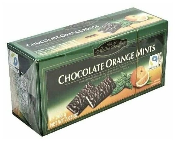 Мини-плитки Maitre Truffout из тёмного шоколада с апельсиново-мятным соусом, 200 г информация: