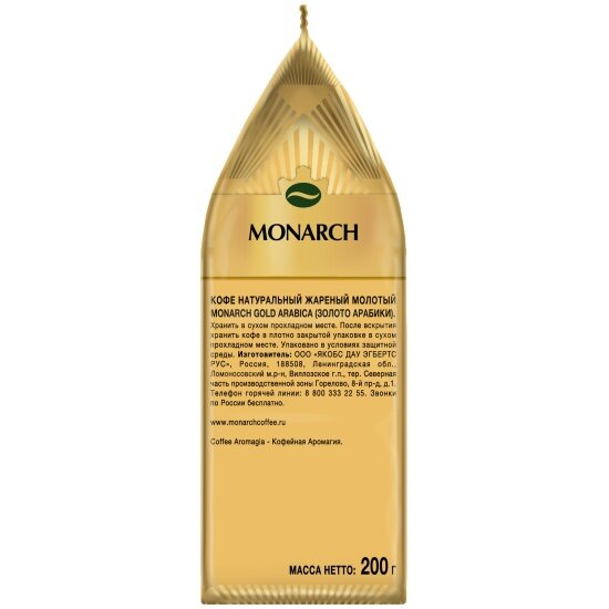 Кофе молотый Monarch Gold Arabica, 200 г информация: