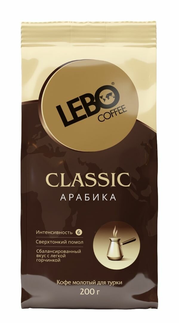 Кофе молотый Lebo Classic Арабика 100% , Приготовление - Турка, 200 г 680 ₽