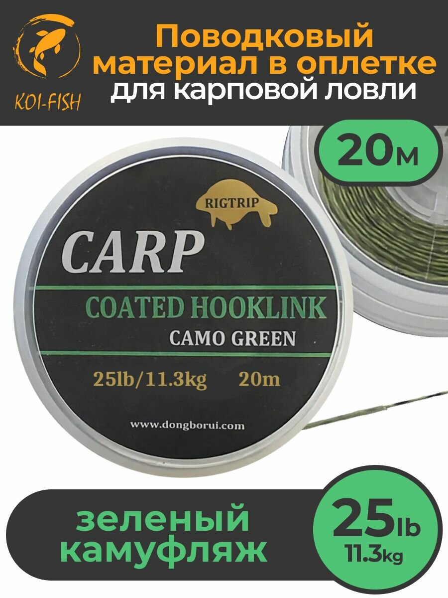 10 цен на Поводковый материал в оболочке 25LB (11,3 кг), 20м Зелёный камуфляж CAMO GREEN в оплётке для карповой ловли