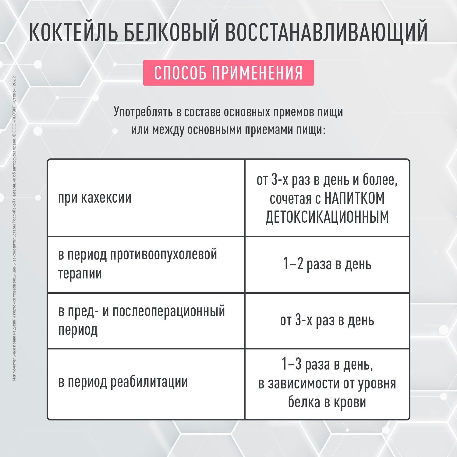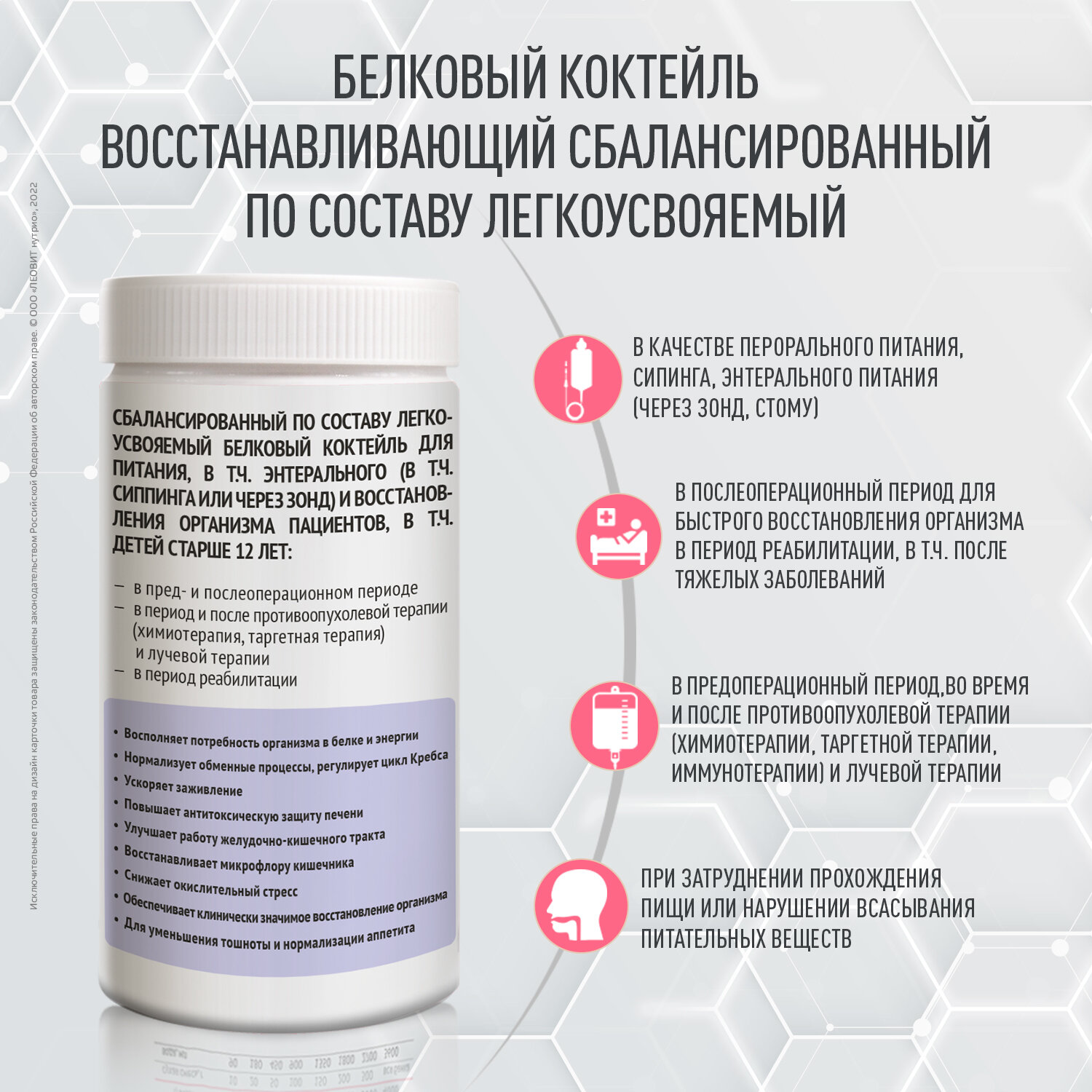 | Назначение | для питания в пред- и послеоперационном периоде / онкологические заболевания / подготовка к операции/восстановление |