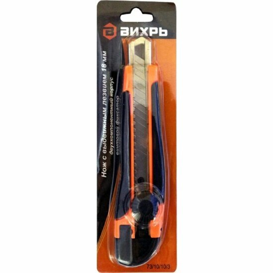 Нож с выдвижным лезвием Вихрь 18 мм, двухкомпонентный корпус, винтовой фиксатор, 73/10/10/3 информация: