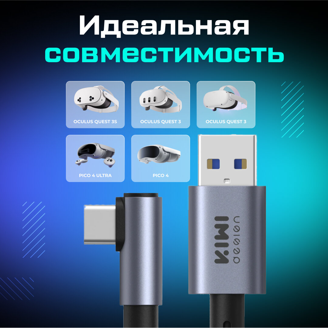 Кабель KIWI design Upgraded Oculus Link для Oculus Quest 3/ 3S/ 2/ Pico 4/Ultra информация: