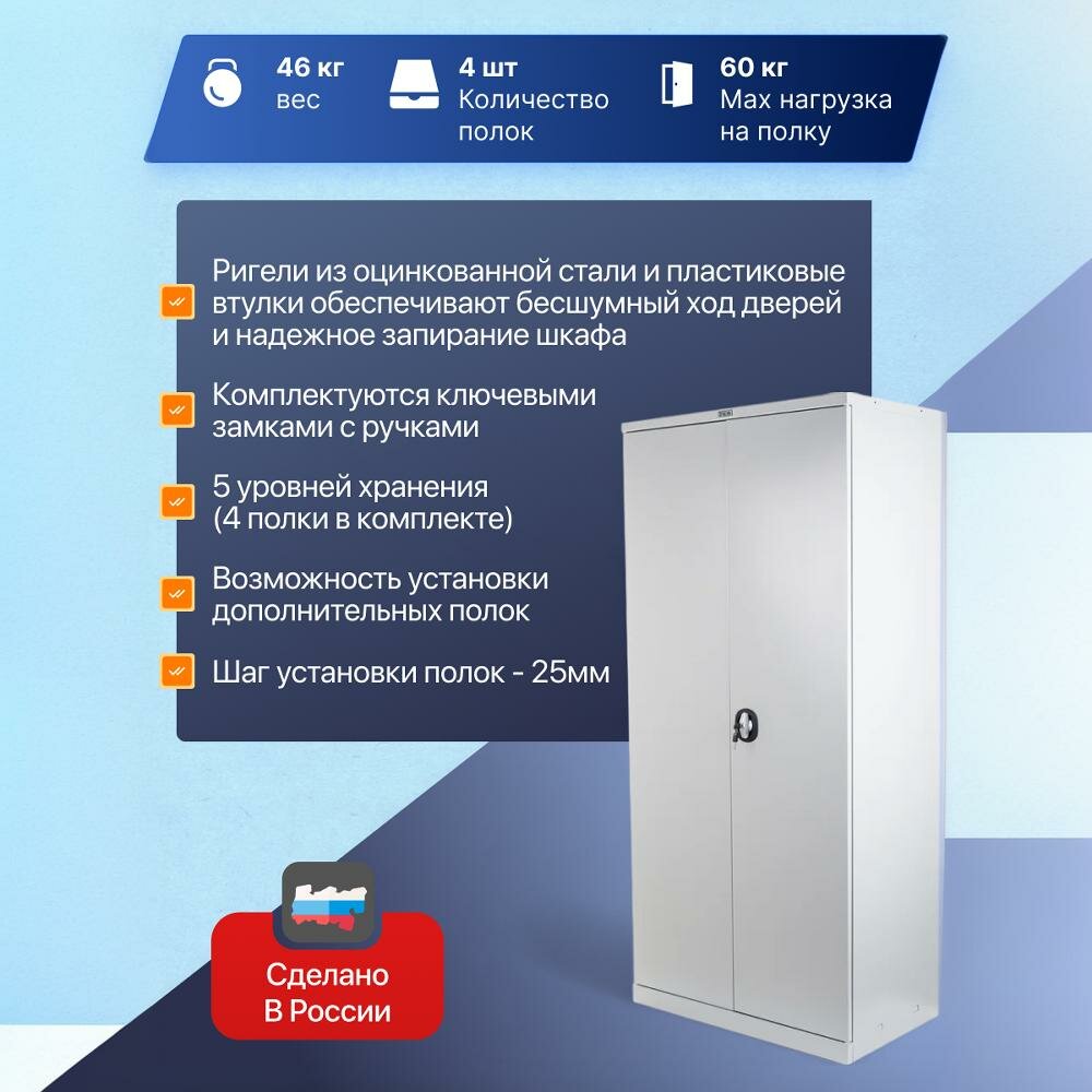 Шкаф архивный для офиса ПРАКТИК CB-14, металлический, 1860х850х500мм, серый-полуматовый, распашной, вместимость 50 папок информация: