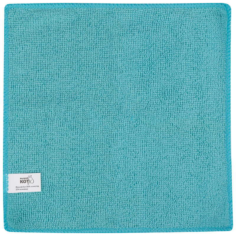 Салфетка универсальная микрофибра 25*25см рыжий КОТ арт.М-01 бирюзовый 280г/м2