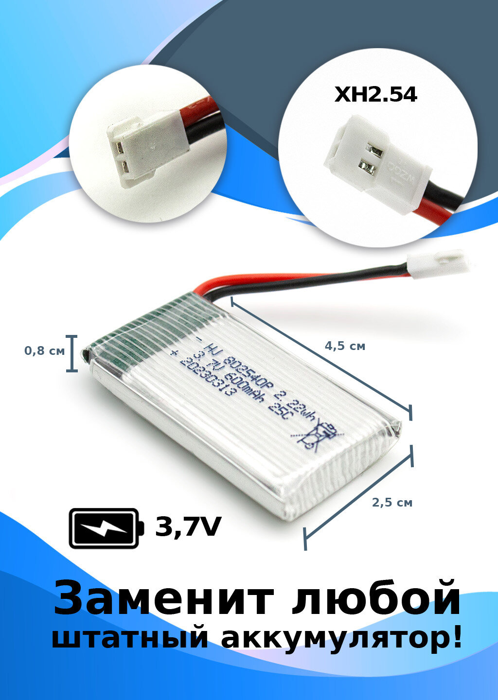Аккумулятор для квадрокоптеров SYMA 3,7 В, 600 мАч, разъем XH2.54 информация: